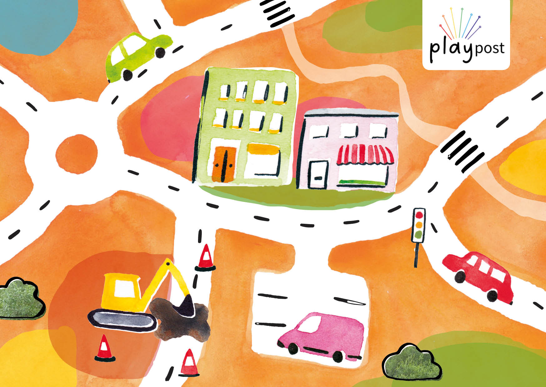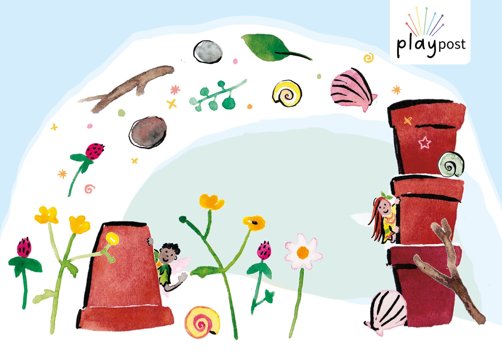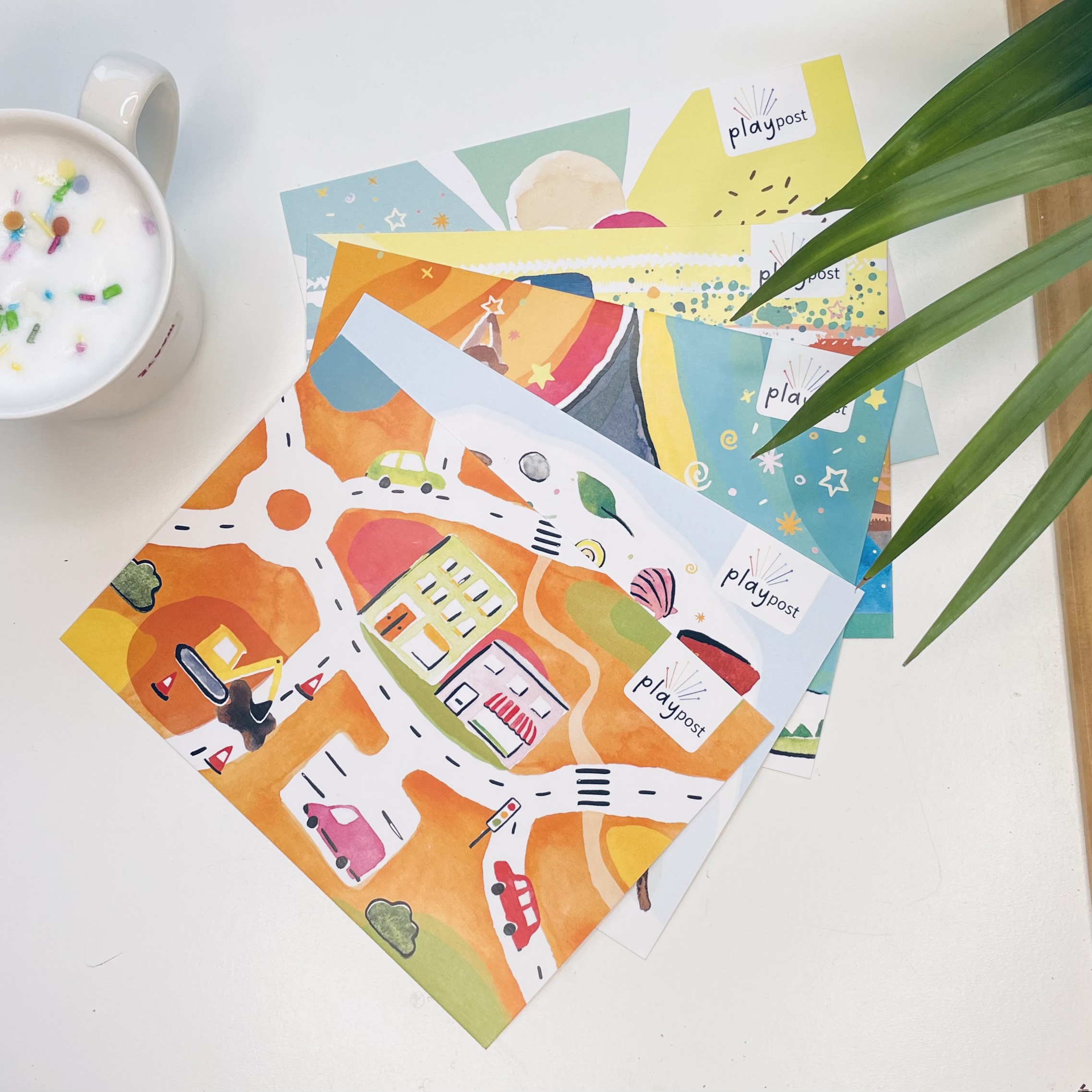 A set of illustrations for Early Play Years‘ Play Post – early literacy play idea postcards for children aged 3-5 and their parents. Each illustration corresponds to a different play activity, detailed on the reverse side.