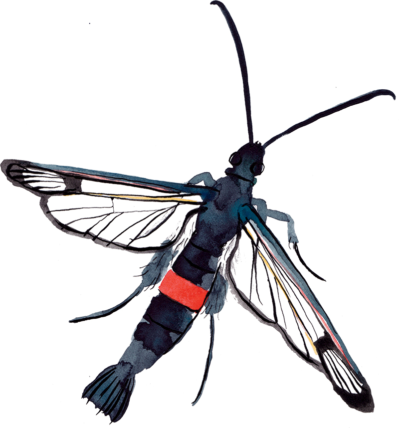 A series of illustrations of key species for Worcestershire Biological Records Centre’s ‘Finding Rare Species on the Malverns’ project, including graphic design of the accompanying survey training materials. The illustrations, including Lesser horseshoe Bat, Red-belted Clearwing and Hazel Dormouse (pictured), needed to be characterful whilst conveying key identification information.